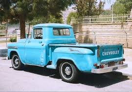 In her old blue pick up truck